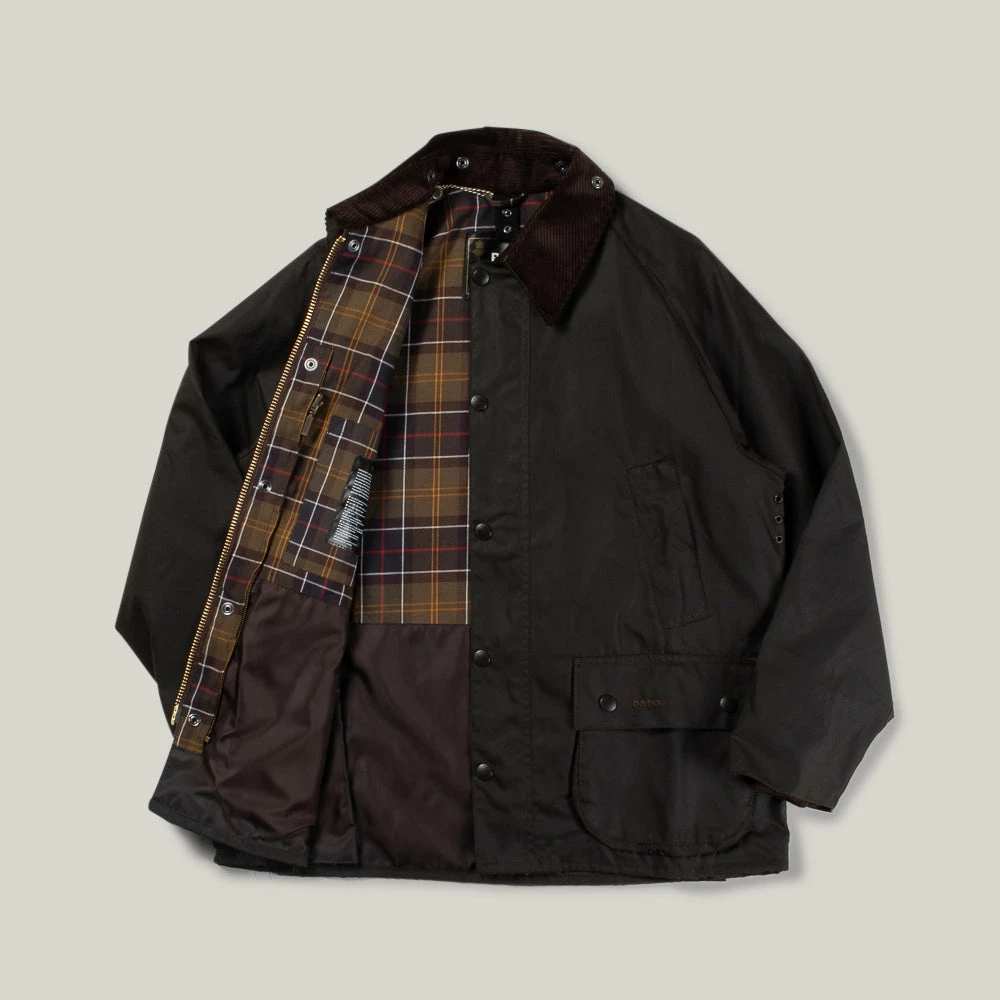 A Bedale has 160 parts, including 49 cut fabric pieces, 103 trims and findings and eight items of packaging, and the jacket takes 36 people in the Barbour factory in South Shields to construct. Shape-wise it is shorter, originally to accomodate riding and slightly boxy to accomodate layering in colder seasons.