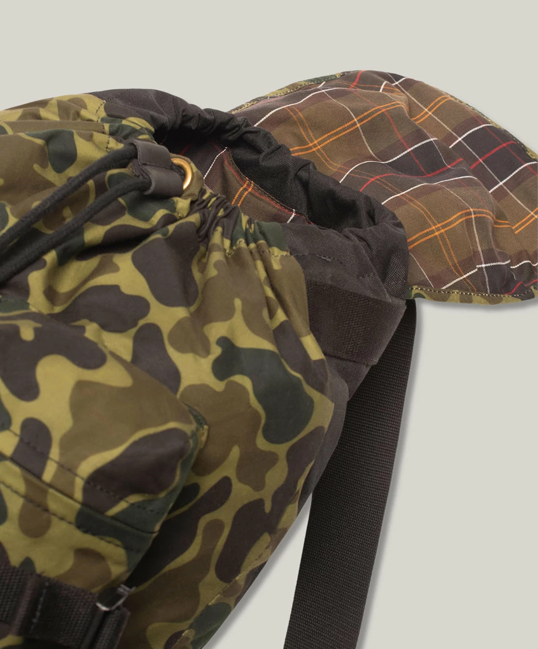 The Barbour x NOAH backpack offers a waxed camo design with two zipped outer front pockets. An adjustable webbing should straps offers comfortable wearing and a draw cord closure below a clip fastening flap ensures secure wearing. This backpack is effortlessly finished with a tartan trim to under-flap