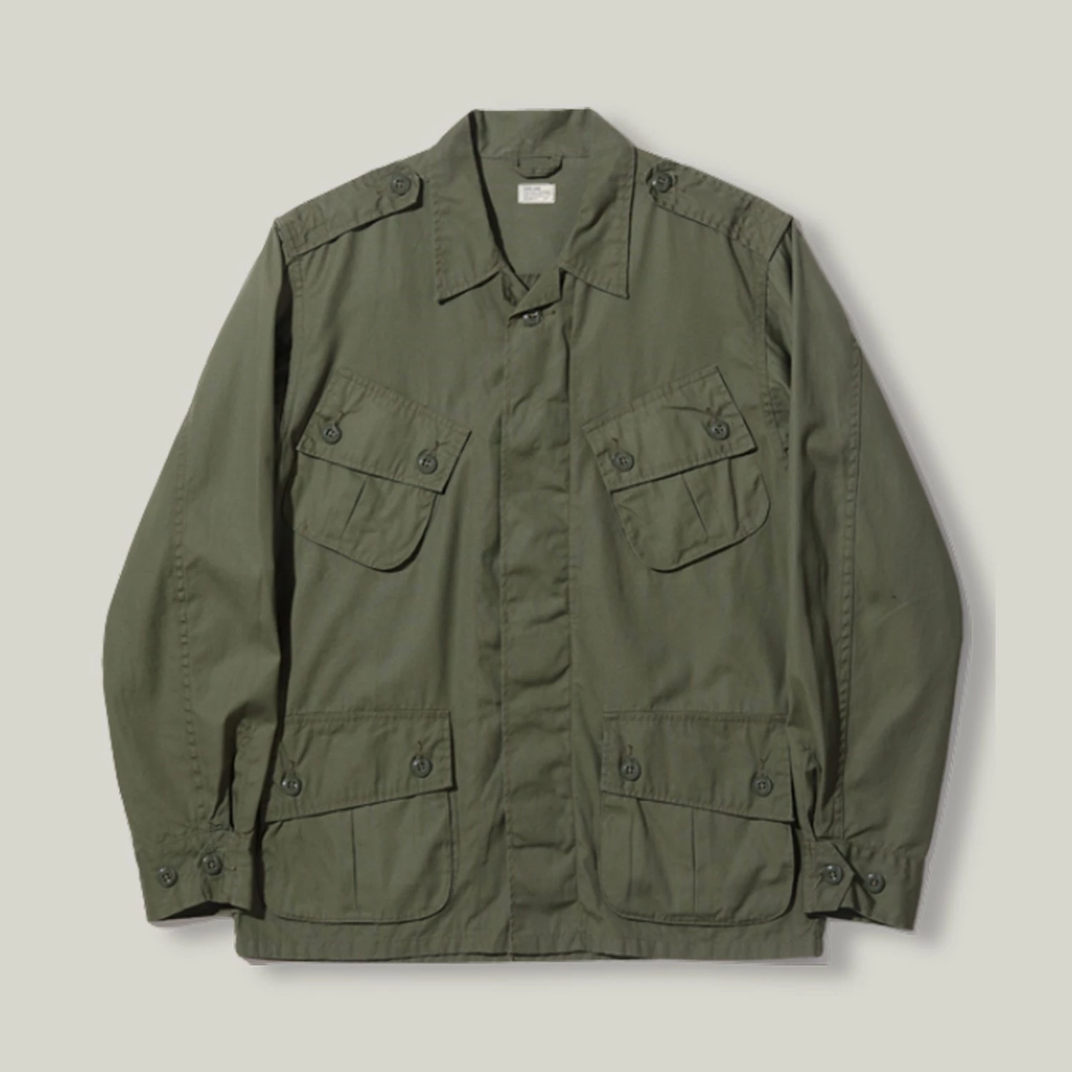 Modelled on the GI’s jacket from the early part of the Vietnam War, (1964 specifically) the guys at Toyo Enterprises have replicated the densely woven poplin weave to create a super lightweight jacket that is naturally water-resistant yet performs superbly in the heat, as you can imagine. No detail has been spared on this reproduction, from epaulets, side adjusters and bellow pockets. The breast pockets are slanted, with bar-tacked reinforcements and pen slots. All buttons are urea, of course. The beauty of this piece is it is so versatile and can be worn by peacocking Pitti Uomo folk, vintage enthusiast and budding photographer alike.