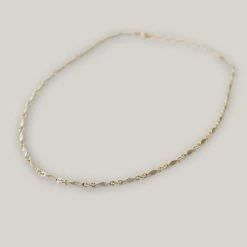 The June Chain is gold filled, meaning is is composed of a number of layers wherein a gold alloy is permanently bonded to the brass core with both heat and pressure.