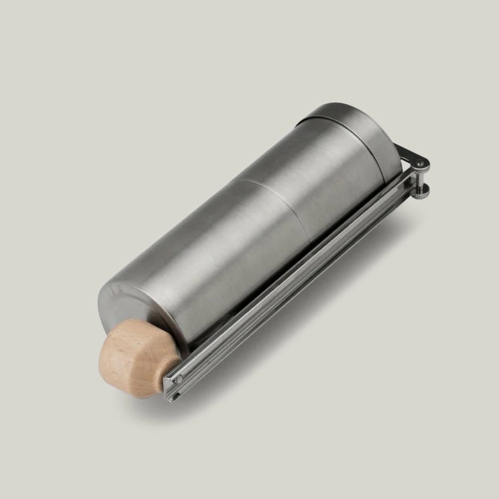 For that much needed cup of Joe first thing in the morning or after a long, wet hike, the coffee mill has been modelled after professional barista equipment and made of stainless steel. It features an adjustable ceramic burr and produces a variety of coffee grounds, depending on your preferred method of preparation. Take it camping or use at home for fresh coffee. Place coffee beans in the top container and turn the handle to grind.