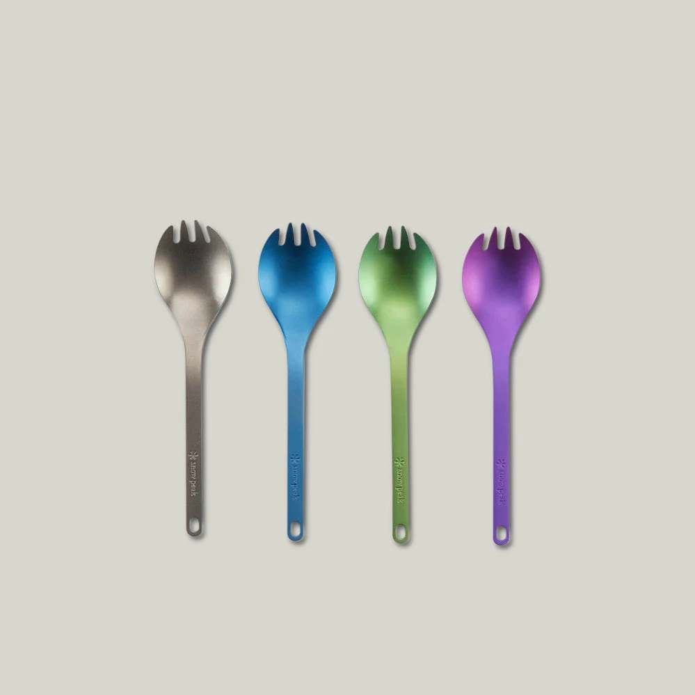 The humble magnificent spork, the one eating iron you want to be armed with on any expedition. This one is made in titanium so it is light, strong and robust. Furthermore it has been anodized in green for your pleasure.