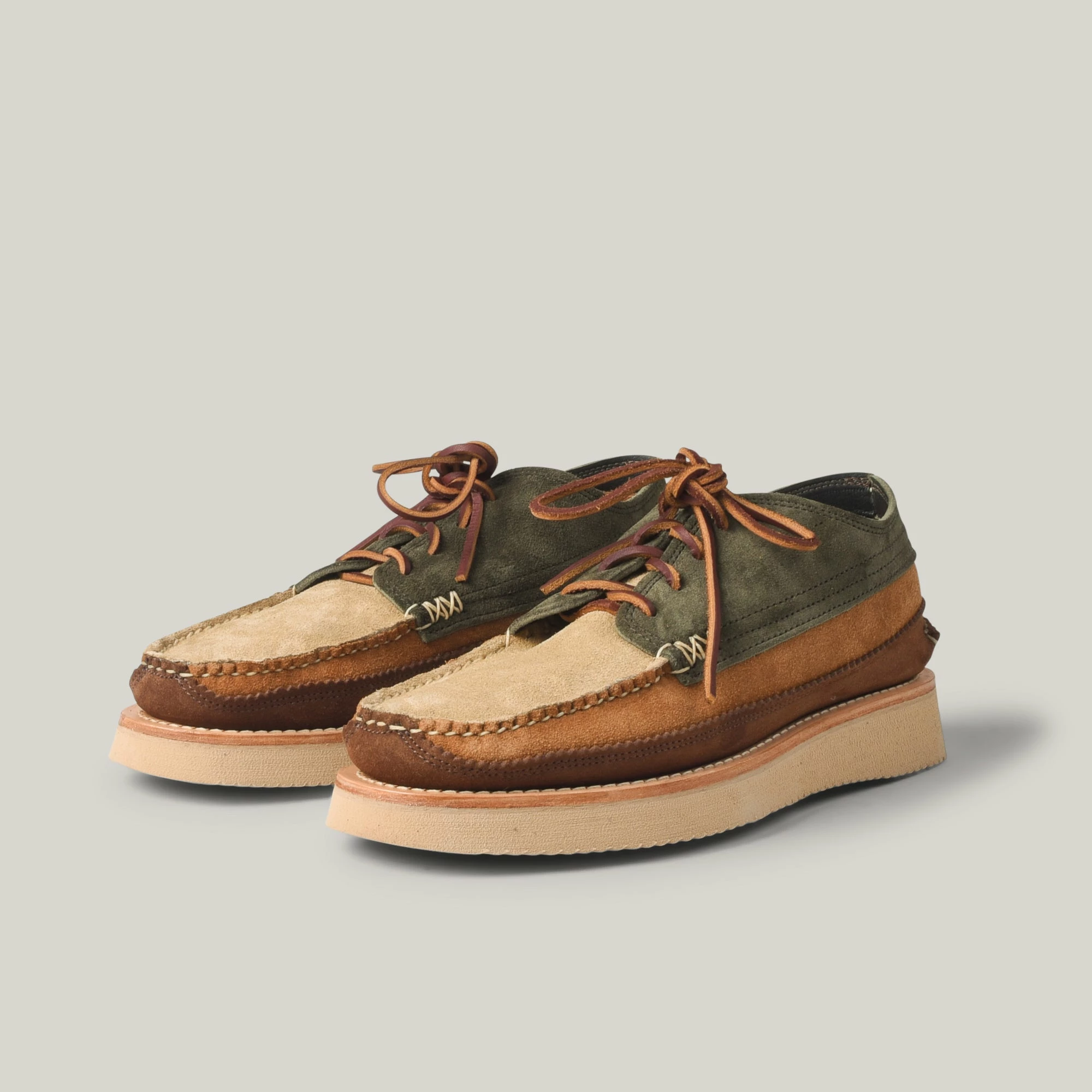Each pair of the Maine Guide Oxfords are handcrafted in their factory in Maine, USA. The shoes benefit from their construction using only the best components and materials such as the Horween’s full grain flesh-out leathers. The leather is described as ‘flesh-out’ as it is full-grain leather that is flipped so that the flesh side of the leather faces outwards. The advantages of using full grain, flesh-out leather rather than split suede leathers are two fold; full grain leathers retain their structure, thickness and durability for long-lasting strength and the smooth grain side of the leather wears pleasantly against the skin, negating the need for additional liners. This way, the wearer enjoys the benefits of full grain leather and the pleasant aesthetic of the nappy, suede-like flesh side of the leather.